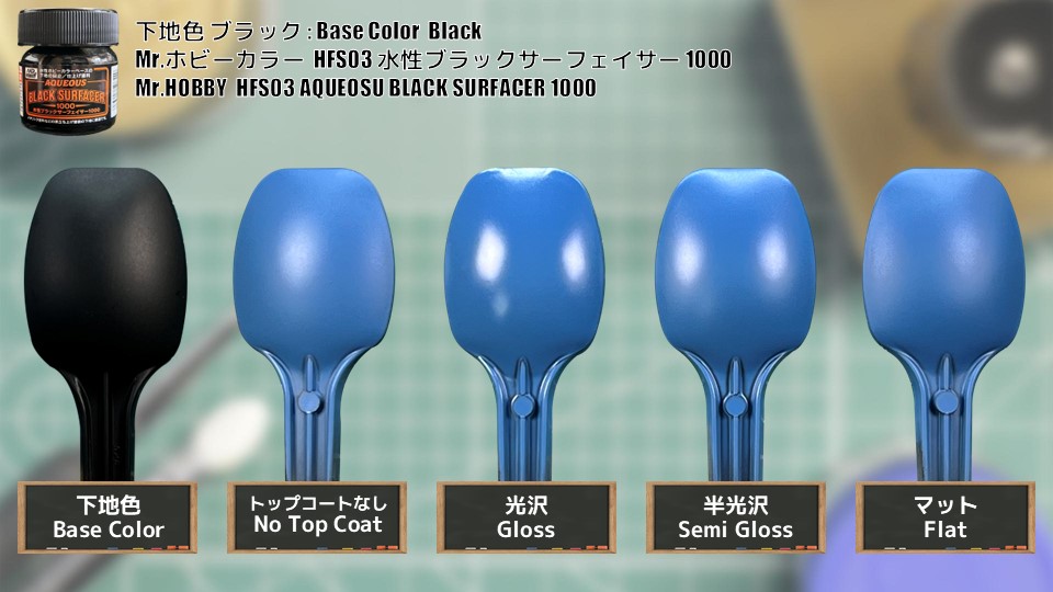 次は、下地が Mr.ホビーカラー HSF03 水性ブラックサーフェイサー 1000です。