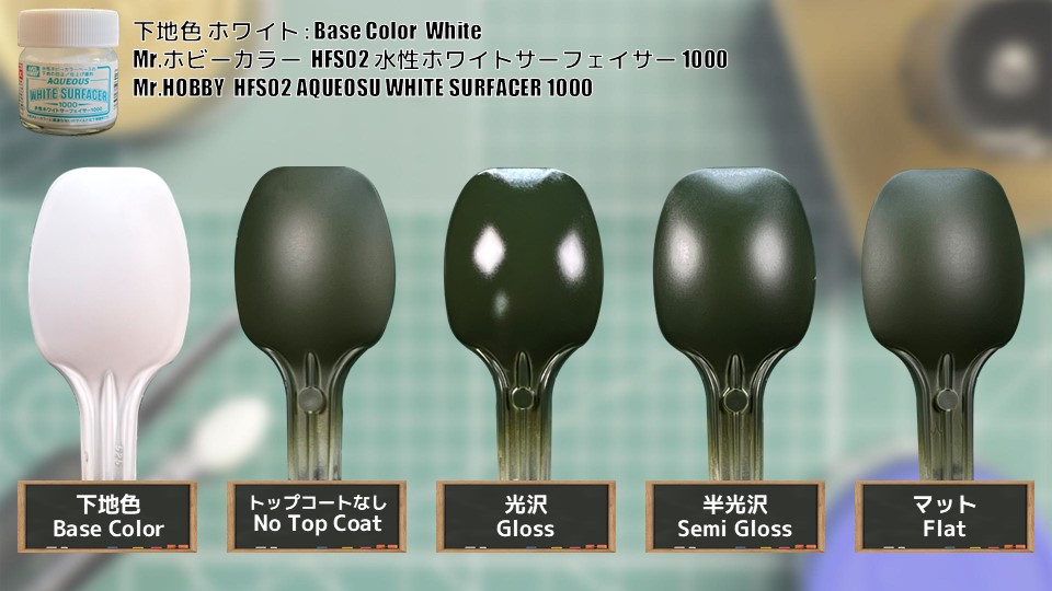 次は、下地が Mr.ホビーカラー HSF02 水性ホワイトサーフェイサー 1000です。