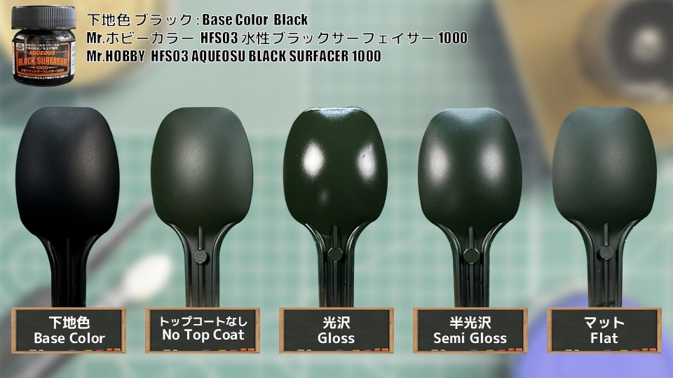 次は、下地が Mr.ホビーカラー HSF03 水性ブラックサーフェイサー 1000です。