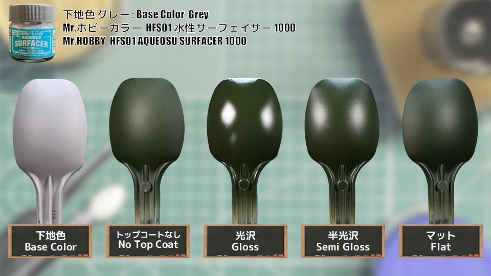 GSI Creos Aqueous Hobby Color H60 Ija Green 2 Semi-Gloss / Ija Aircraft Color Water-based surfacer gray . White . black I tried painting with 3 types of bases and compared them.