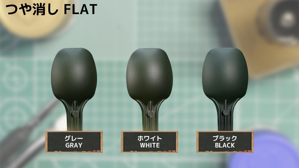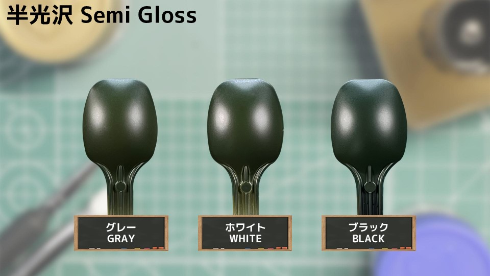 つや消しは、少し暗めで 色合いが濃くなりますが、渋く感じの良い色合いで表現されていました。