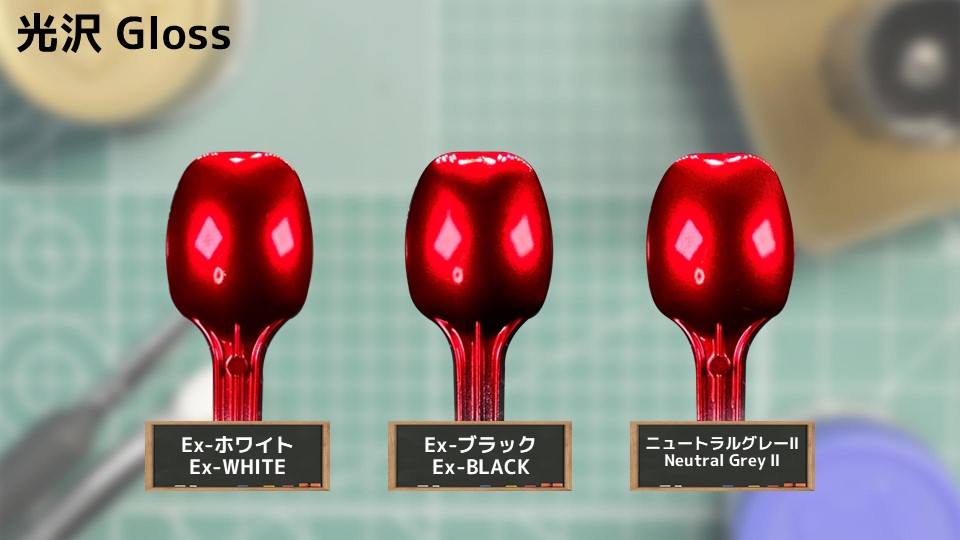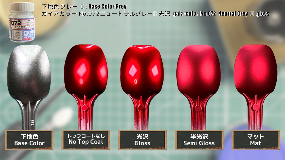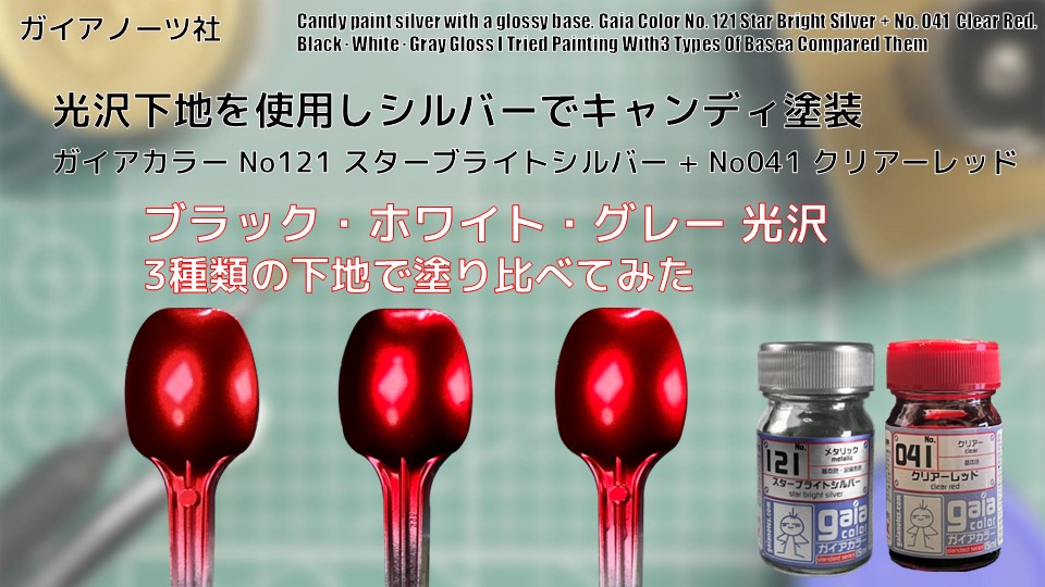 Candy paint silver with a glossy base. Gaia Color No.121 Star Bright Silver + No.041 Clear Red.Black・White・Gray Gloss I Tried Painting With3 TypesOfBasea Compared Them.