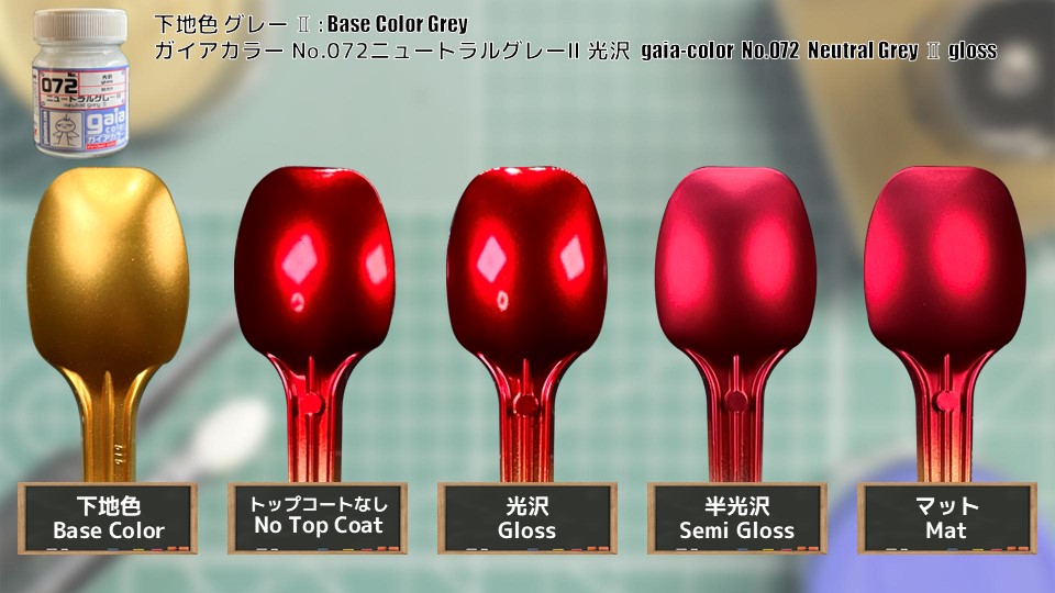 Candy paint silver with a glossy base. Gaia Color No.122 Star Bright Gold + No.041 Clear Red . Black・White・Gray Gloss I Tried Painting With3 TypesOfBasea Compared Them.
