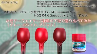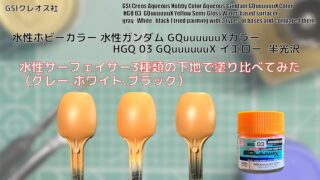 GQuuuuuuXカラー 水性ホビーカラー 水性ガンダム GQuuuuuuXカラー HGQ 03 GQuuuuuuX イエローを水性サーフェイサー3種類の下地で塗り比べてみた。