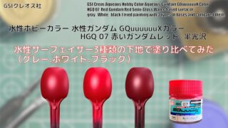 GQuuuuuuXカラー 水性ホビーカラー 水性ガンダム GQuuuuuuXカラー HGQ 07 赤いガンダムレッドを水性サーフェイサー3種類の下地で塗り比べてみた。
