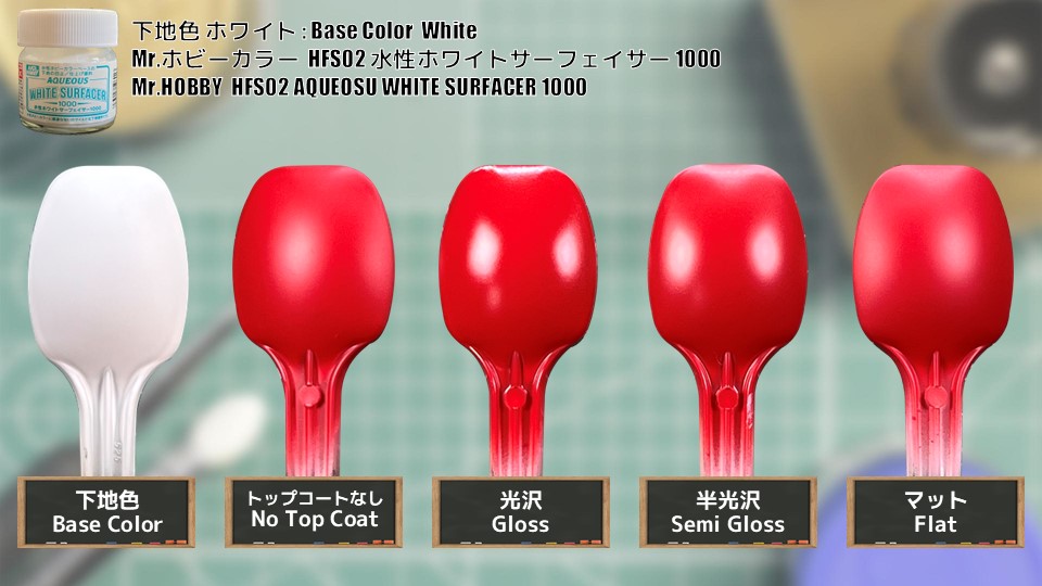 次は、下地が Mr.ホビーカラー HSF02 水性ホワイトサーフェイサー 1000です。