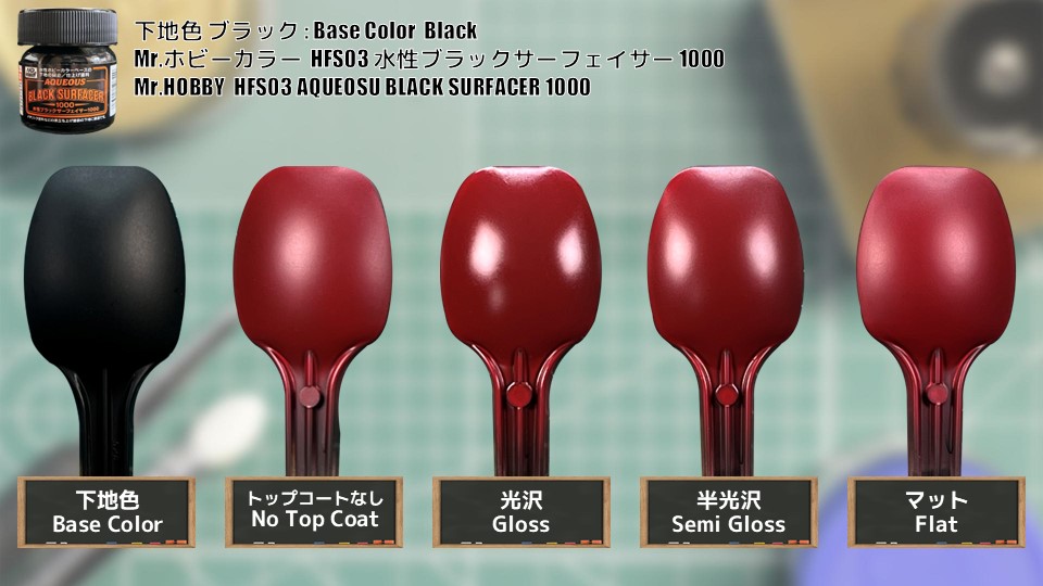 次は、下地が Mr.ホビーカラー HSF03 水性ブラックサーフェイサー 1000です。