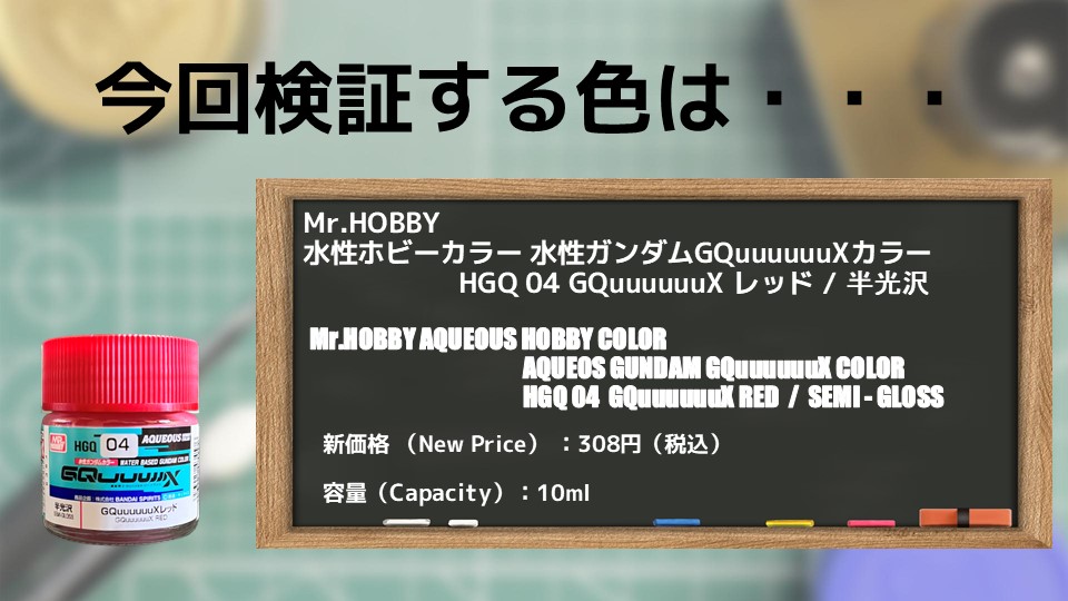 今回比較検証する塗料は、Mr. ボビー 水性ガンダム GQuuuuuuXカラー HGQ 04 GQuuuuuuX レッドです。