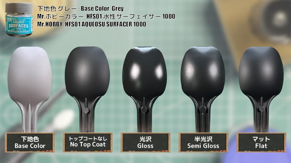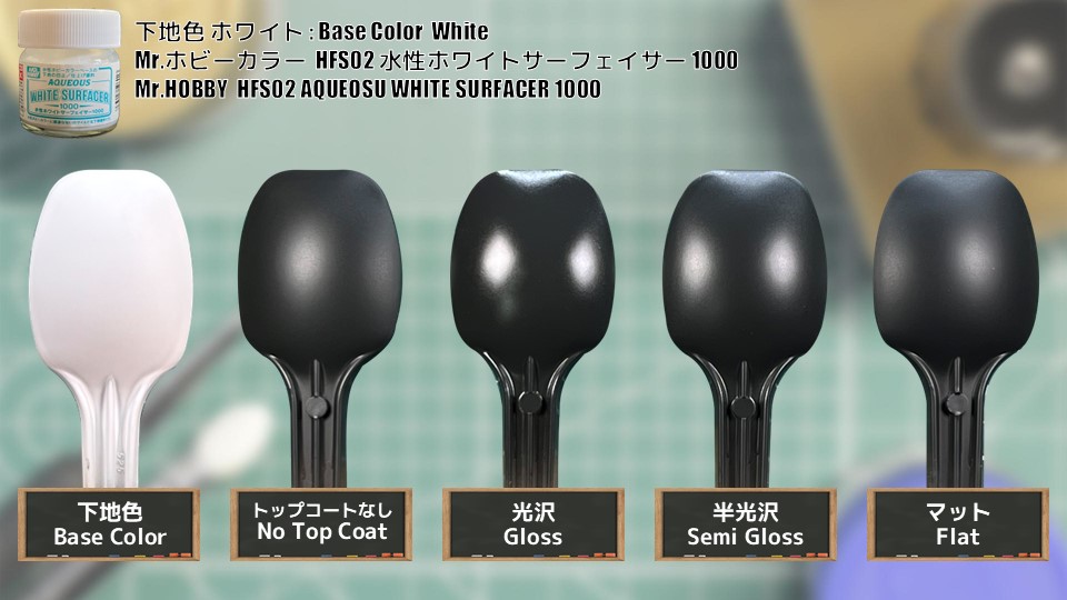 次は、下地が Mr.ホビーカラー HSF02 水性ホワイトサーフェイサー 1000です。