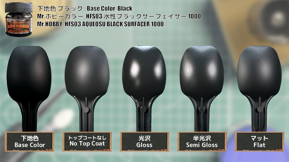 次は、下地が Mr.ホビーカラー HSF03 水性ブラックサーフェイサー 1000です。