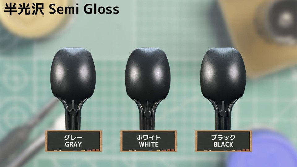 半光沢は、本来の塗料の半光沢より 艶の差が有りますが、色合いは少し濃いさを感じますが 鮮やかさが有り 落ち着いた感じの良い色合いだと思います。