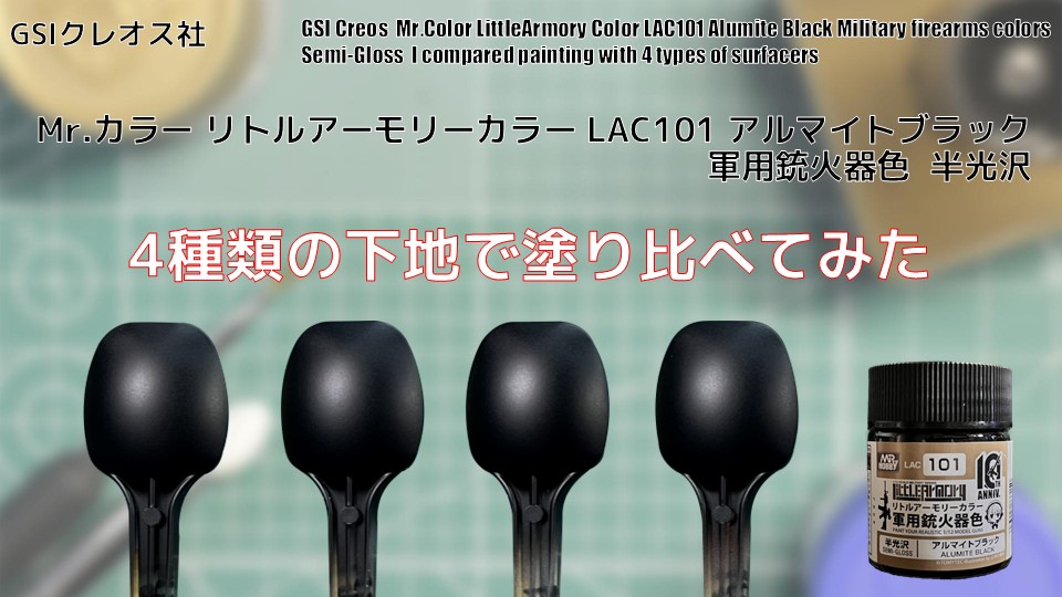 Request verification GSI Creos Mr.Color LittleArmory Color LAC101 Alumite Black Militar firearms colors Metallic I compared painting with 4 types of surfacers