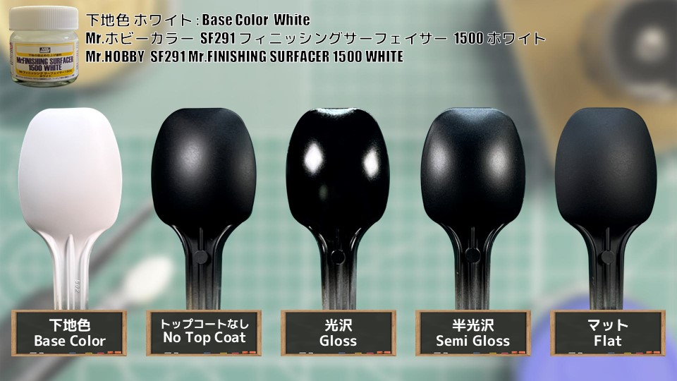 次は、下地がMr.ホビーカラー SF291 フィニッシングサーフェイサー1500 ホワイトです。