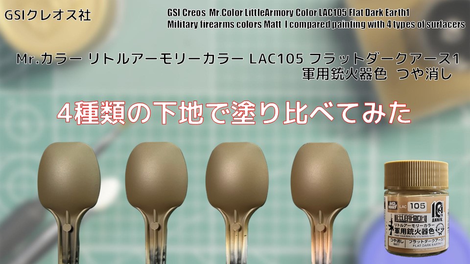 Request verification GSI Creos Mr.Color LittleArmory Color LAC105 Flat Dark Earth1 Militar firearms colors Metallic I compared painting with 4 types of surfacers