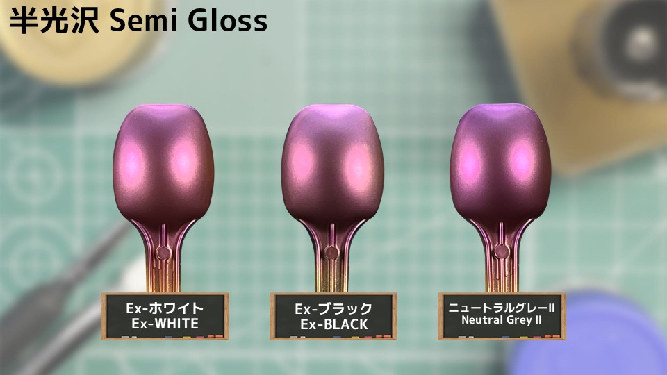 Candy paint silver with a glossy base. Gaia Color No.122 Star Bright Gold + No.047 Clear Purple . Black・White・Gray Gloss I Tried Painting With3 TypesOfBasea Compared Them.