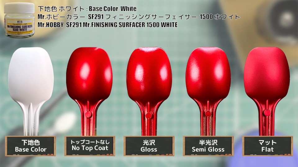 次は、下地がMr.ホビーカラー SF291 フィニッシングサーフェイサー1500 ホワイトです。