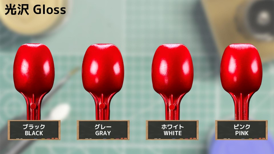 光沢では、さらに艶が出て、より深みがあり、綺麗で鮮やかなレッドの色合いで表現されています。