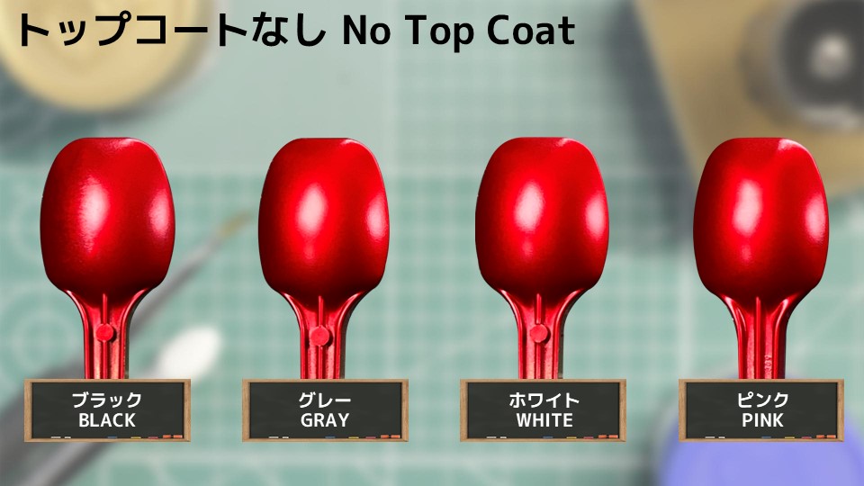 次は、それぞれの下地ごとの トップコート別を纏めてみましたので、どのように違いが出るのかを比較して頂ければと思います。