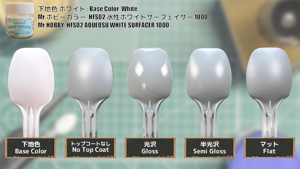 次は、下地が Mr.ホビーカラー HSF02 水性ホワイトサーフェイサー 1000です。