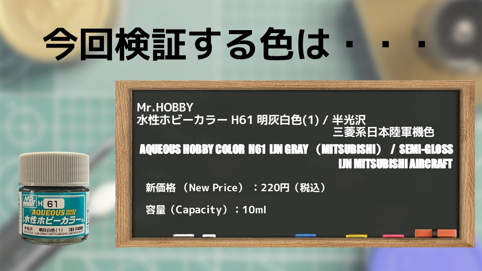 今回比較検証する塗料は、Mr. ボビー 水性ホビーカラー H61 明灰白色(1)です。